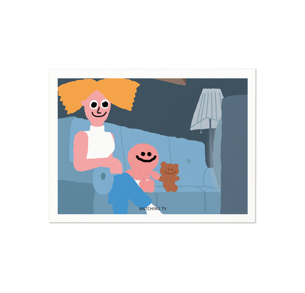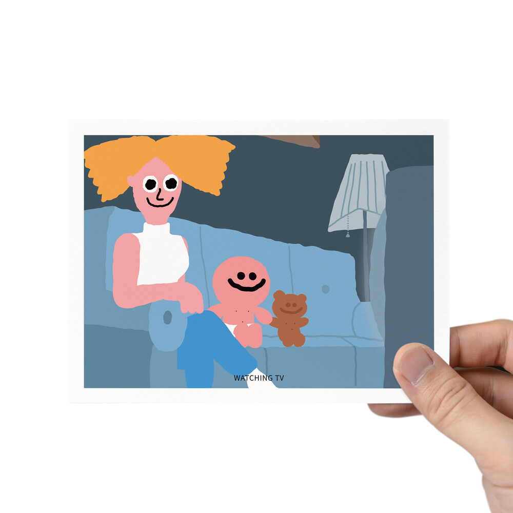 WATCHING TV - POSTCARD